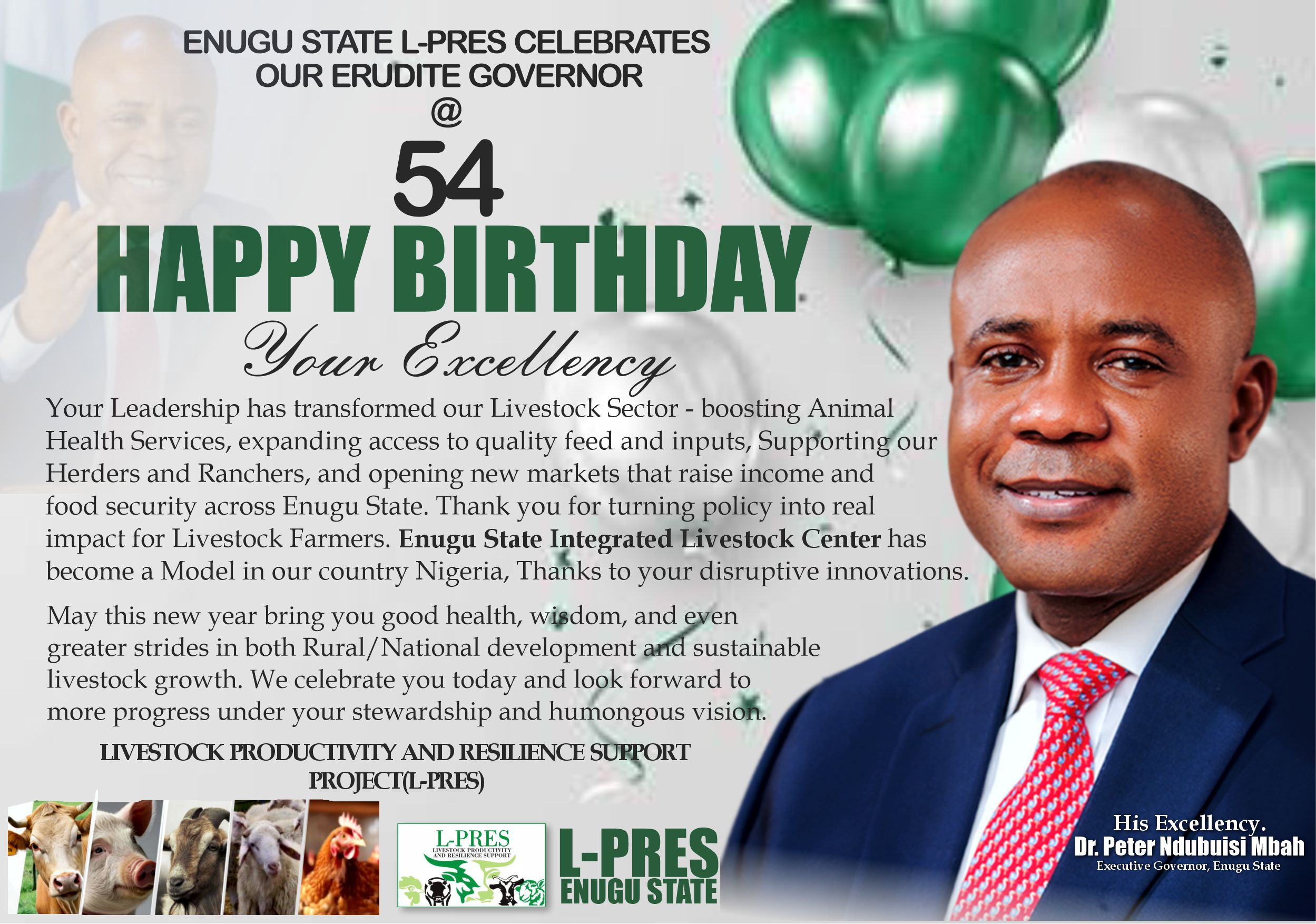 Welcome to L-PRES Enugu, the Livestock Productivity and Resilience Support Project, a World Bank initiative committed to revolutionizing the livestock sector in Enugu State. We have a three-year journey ahead to fulfill our mission of enhancing productivity and resilience in cattle, piggery, and poultry farming, in line with Governor Peter Mbah’s manifesto. Our goal is to empower farmers, boost production, and drive economic growth in Enugu State.